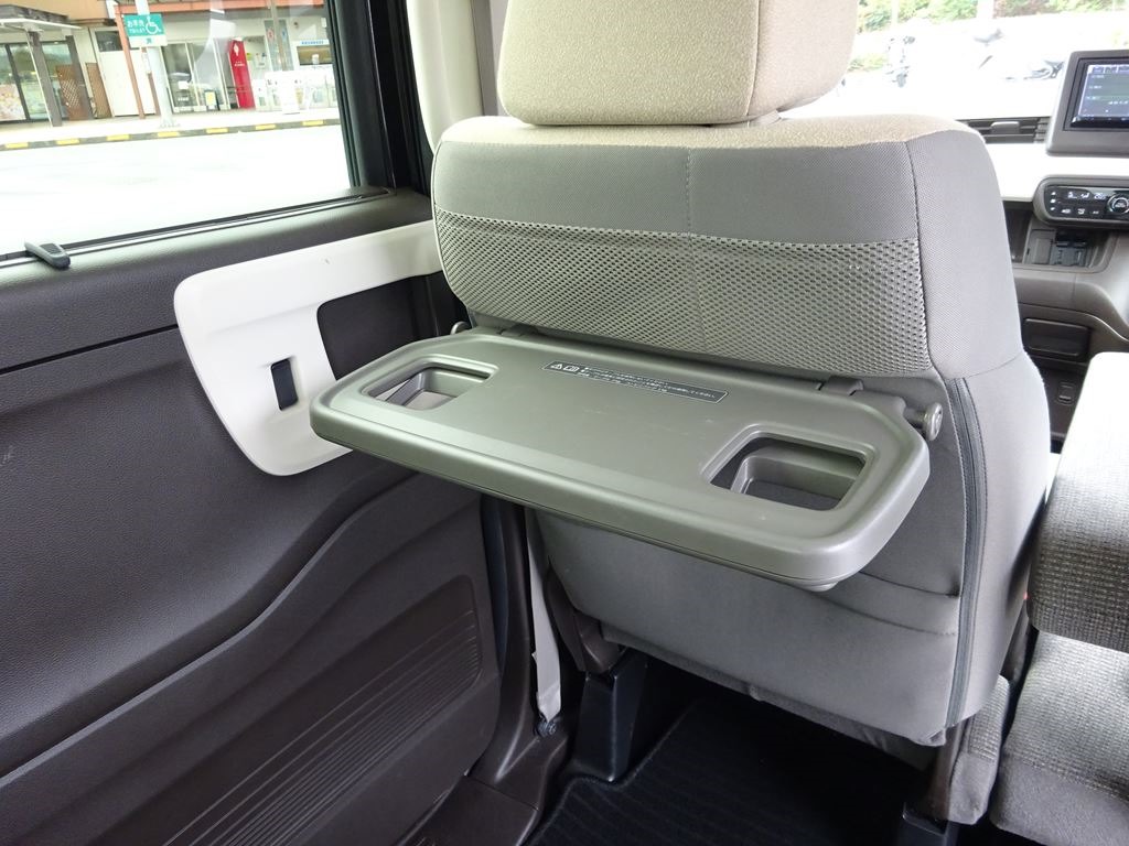 最近のこのクラスの車には標準装備となりつつあるシートバックテーブルもちゃんとついている。便利そうなので我がスペーシアにも欲しい装備なのだが、社外品は華奢で見た目が悪くなるのでやはり純正品が良い。これは車を買い換えた時のお楽しみとなりそうだ。