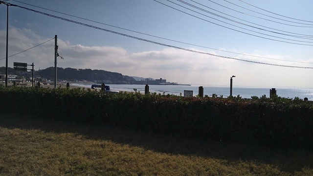 それを持って由比ガ浜の方へ向かい、海岸沿いの広場で食べることに。