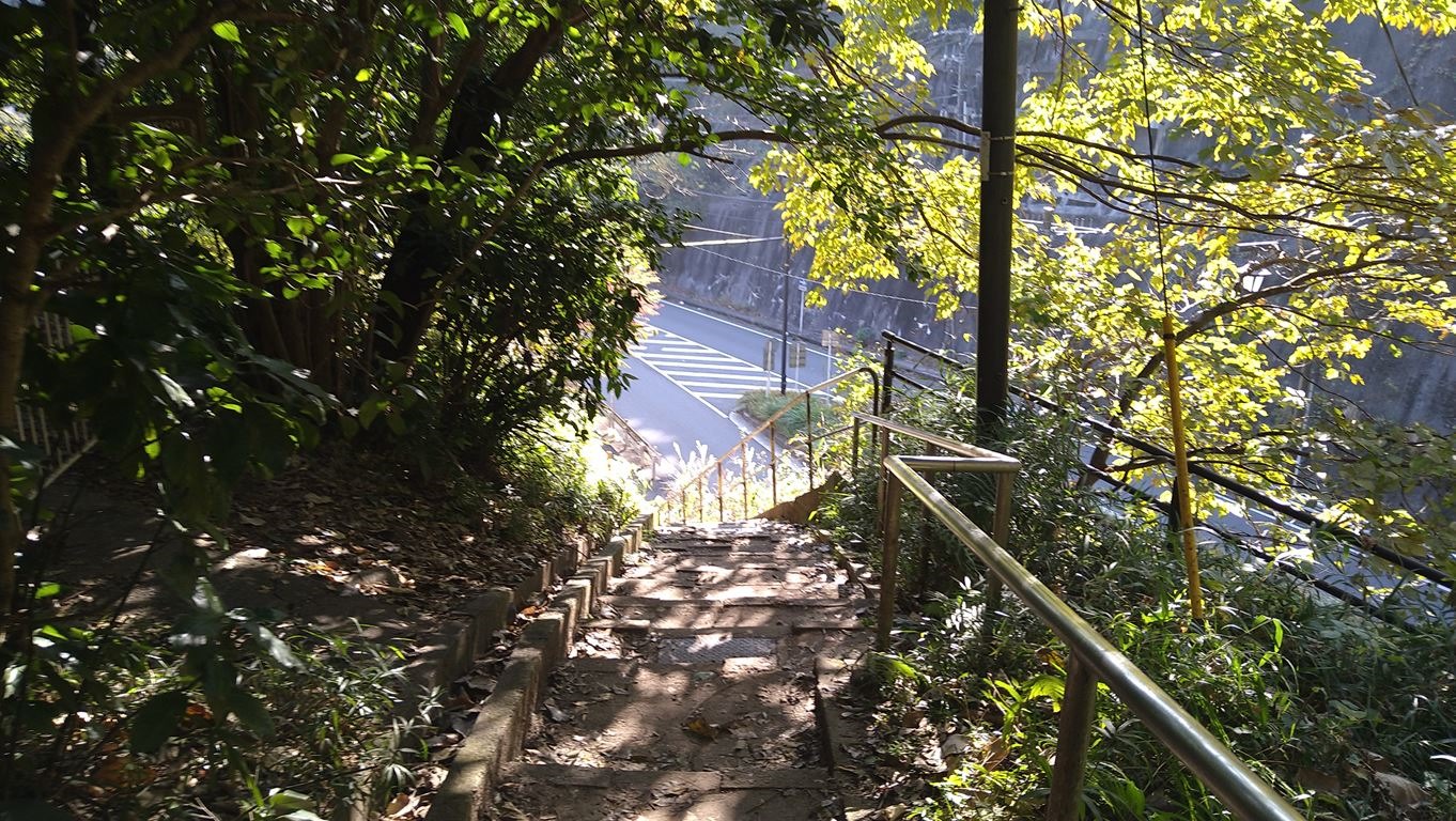 ここを降りて大仏坂に出たら、あとは県道を歩いて行けばほどなく大仏に到着する。