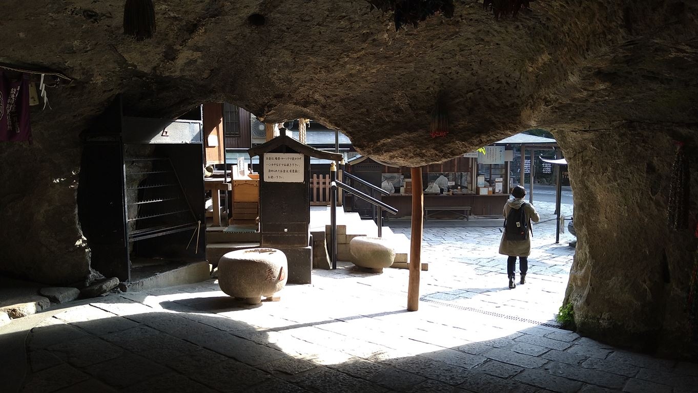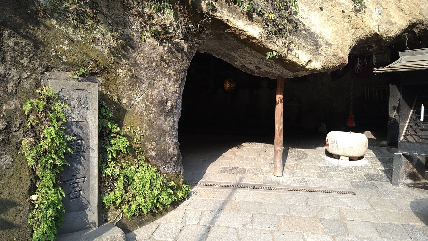 トンネルを抜けるとその奥が山の斜面に囲まれた境内になっている。