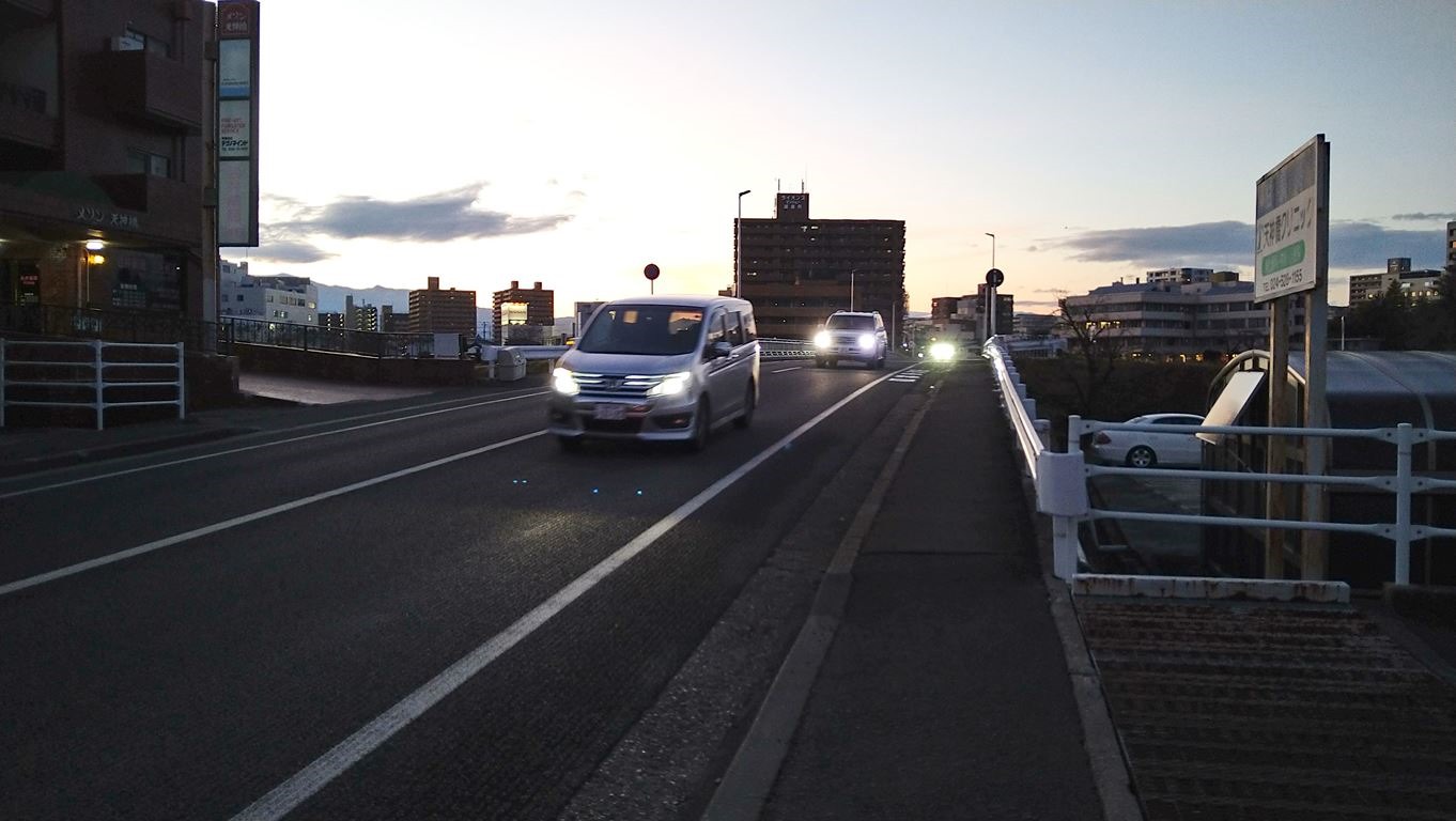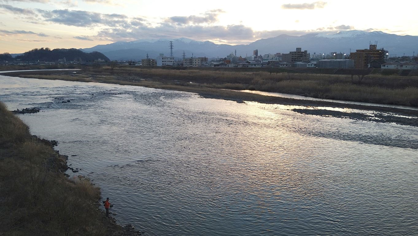 そして天神橋で再び阿武隈川を渡る。渡った先には福島県庁がある。川沿いに歩けそうだったので少し歩いてみた。あとは街中をブラブラと彷徨い、18時前に福島駅前に戻ってきた。歩行距離約8キロ、1時間40分ほどの散策で程よい疲労感だ。