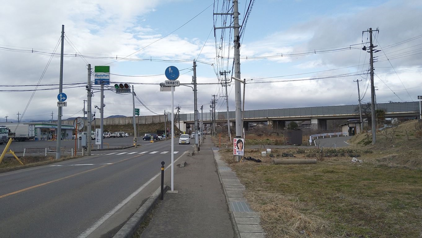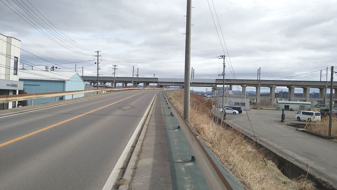 そこから1キロほど進むと福島市を抜け伊達市に入る。伊達市に入ってすぐに東北本線東北新幹線を越える。東北本線は高架でまたぎ、東北新幹線は高架下を通り抜ける。これがふたつ目のマイルストーン。