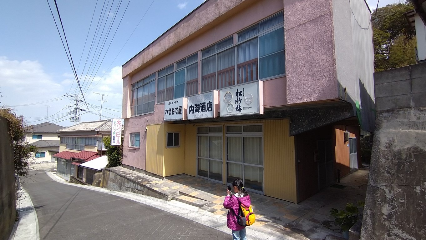 同じ店なのか、建物内で分かれているのか不明だが、内海酒店とわせねで屋という2つの看板が掲げられている。それにしても看板に掲載された電話番号が「(浦戸)70」だ。つまり手動交換機を使っていた時代からある看板ということになる。いつからあるのだろう・・・。