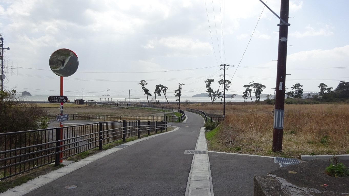 こちら側は建物らしきものが一切ない。古い航空写真を見てみると、この辺りは一面の畑だったようだ。ただし、海岸に沿った防風林の内側に数戸の家屋の姿も見える。が、現在はご覧のとおり何もない。これも東日本大震災の津波によって、家屋が押し流されてしまったのだろう。