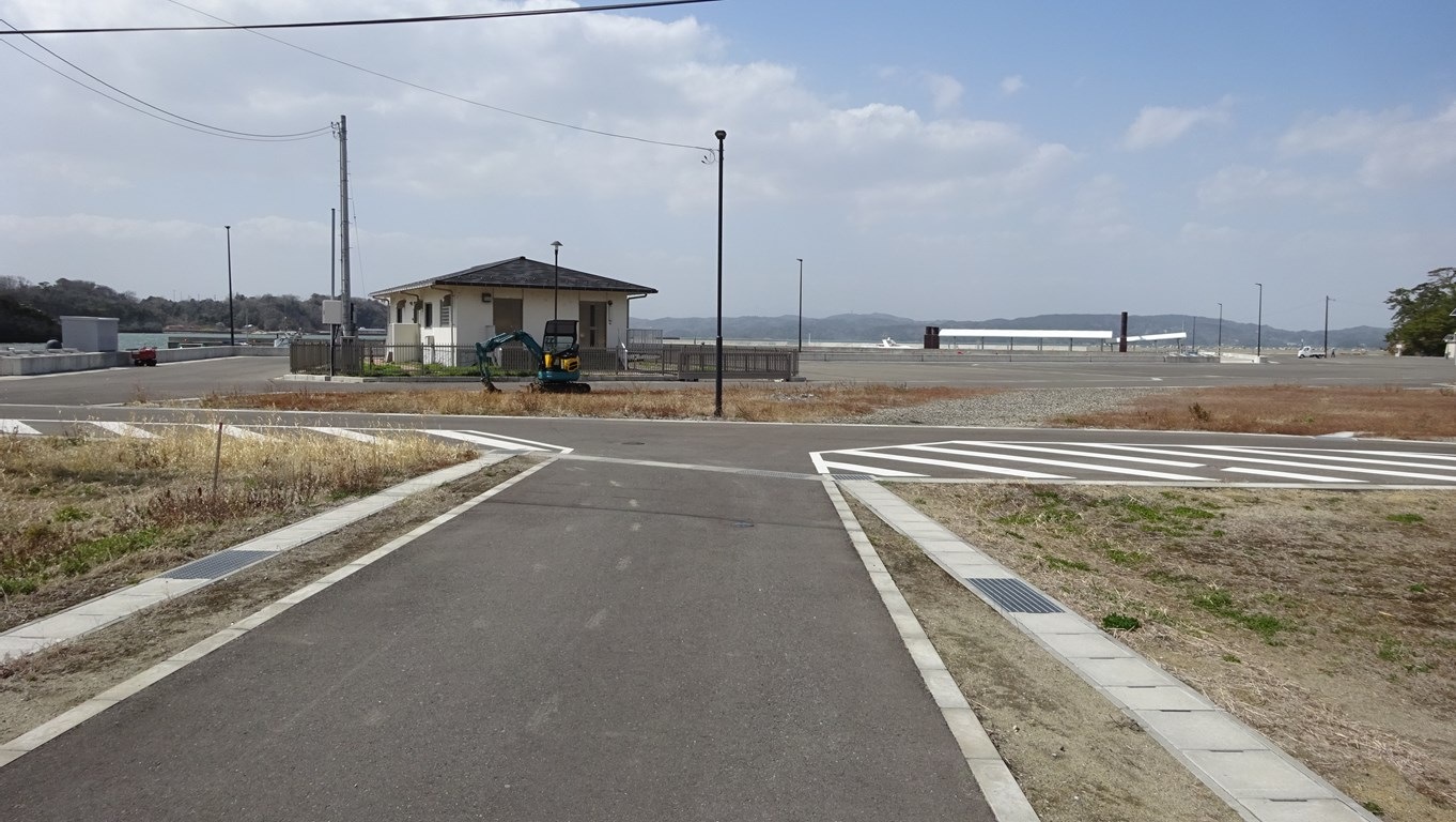 桟橋への入口は仮設の通路になっていて、震災から13年を経た今も復興事業が続いているようだ。