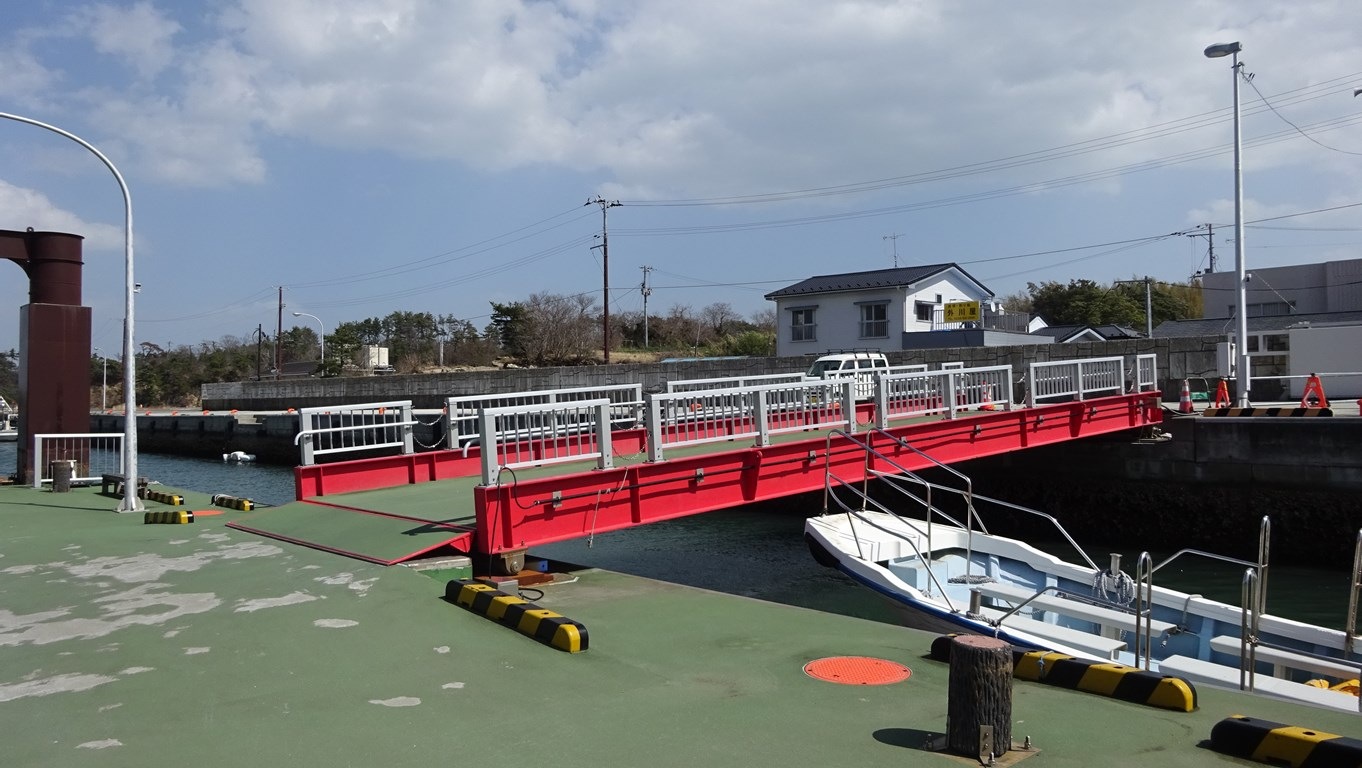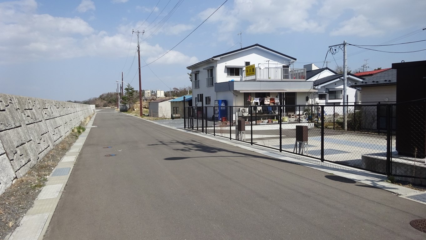 港の浮き桟橋から護岸堤防の内側に入ると、集落が広がっている。この辺りも少なからず津波の被害を受けているようで、建物は新しいものが多い。