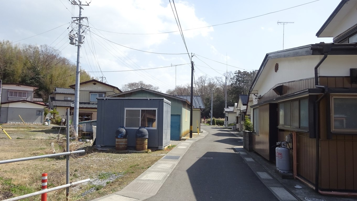 その先に小奇麗な平屋の集合住宅があった。震災の復興住宅のようだが、この建物はURによって建てられたものだそうだ。URというと都市部の団地をつくる団体というイメージがあるが、こういう仕事もしているのだな。