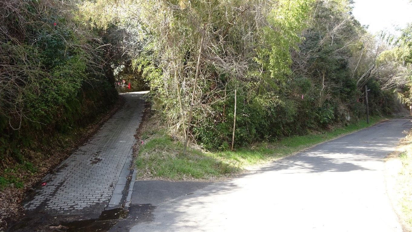 そこを過ぎると道がX字型に交差する路地に出た。左方向へ進む道は尾根伝いに鰐ヶ淵の方へと向かう道である。