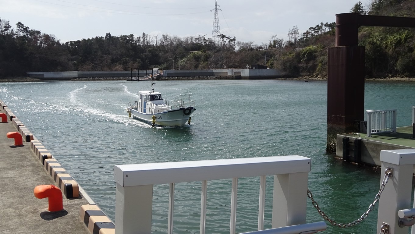 再び桟橋に出ると、船は一旦野々島に引き返したようで、岸壁に姿がなかった。再びコールするとすぐに電話に出られて、すぐ行きますと返事があった。なんかすごくオンデマンドな感じがするが、無料でこき使っているような気がして少し申し訳ない気持ちになる。
