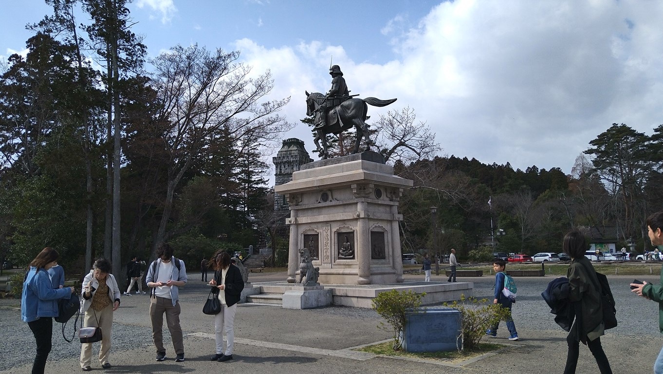 山頂に到着し、伊達政宗像などや仙台城本丸跡などを見学してから、宮城縣護国神社に参拝に行った。